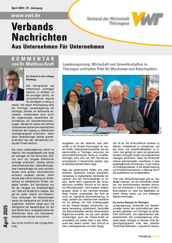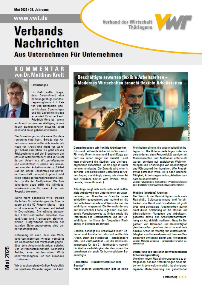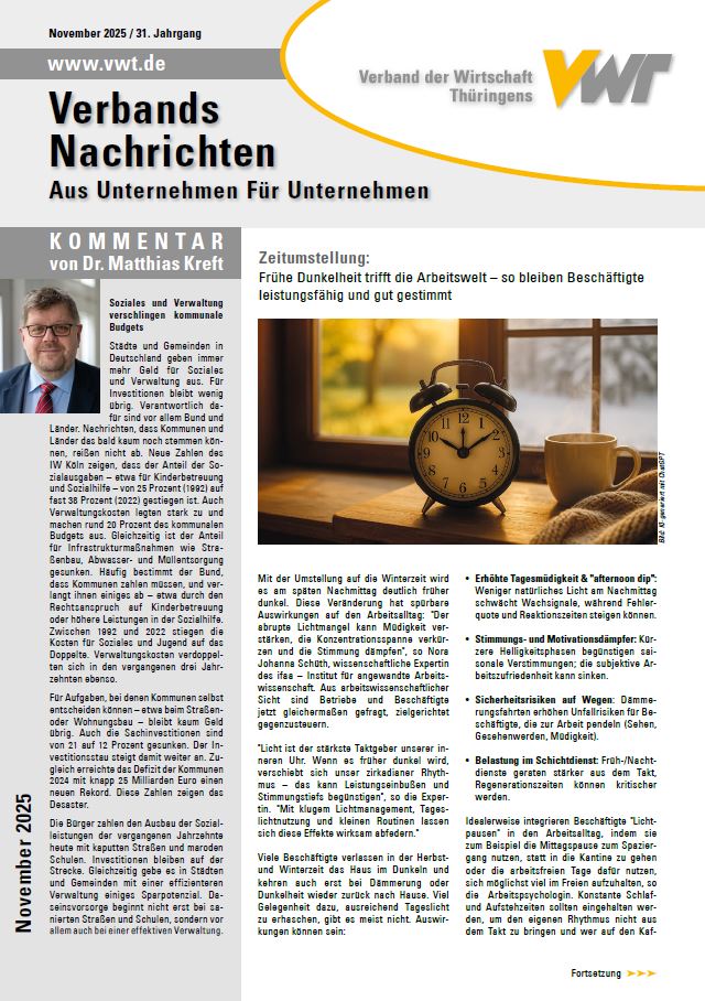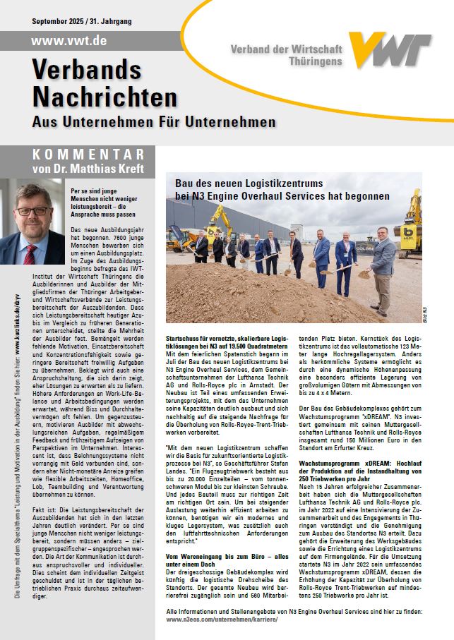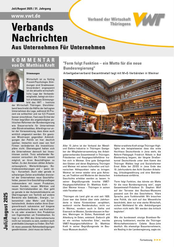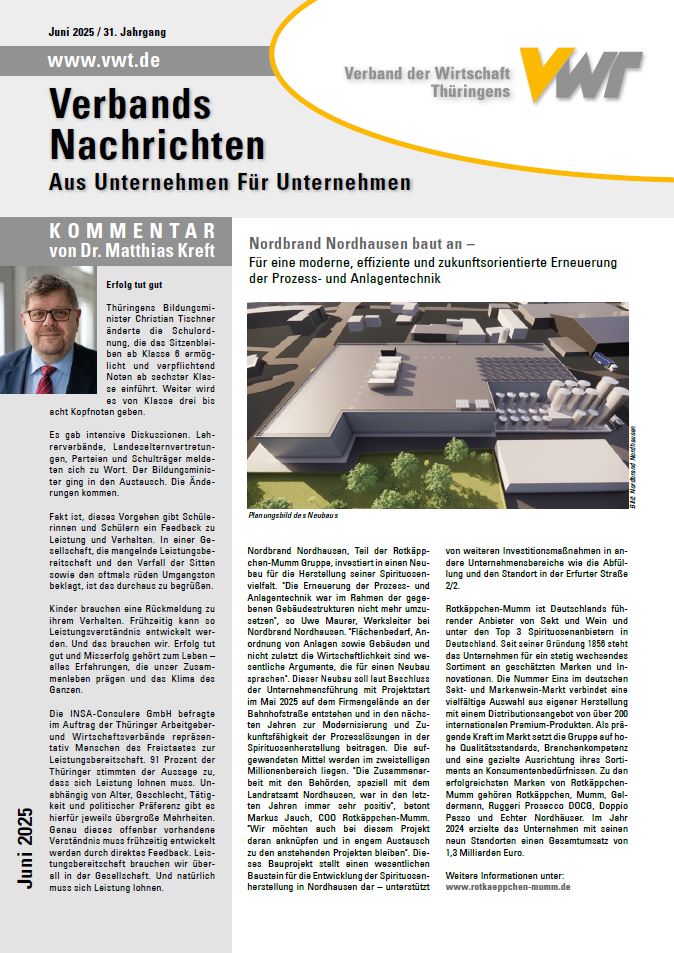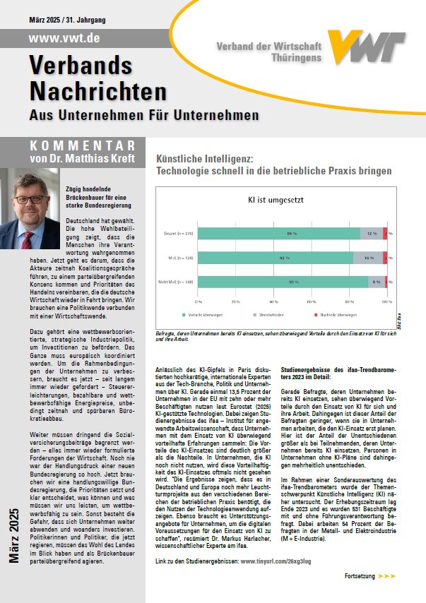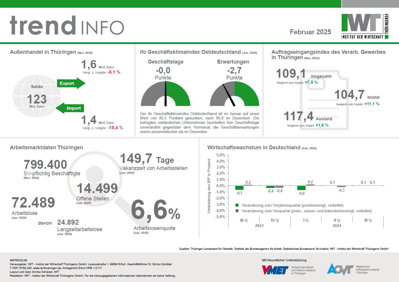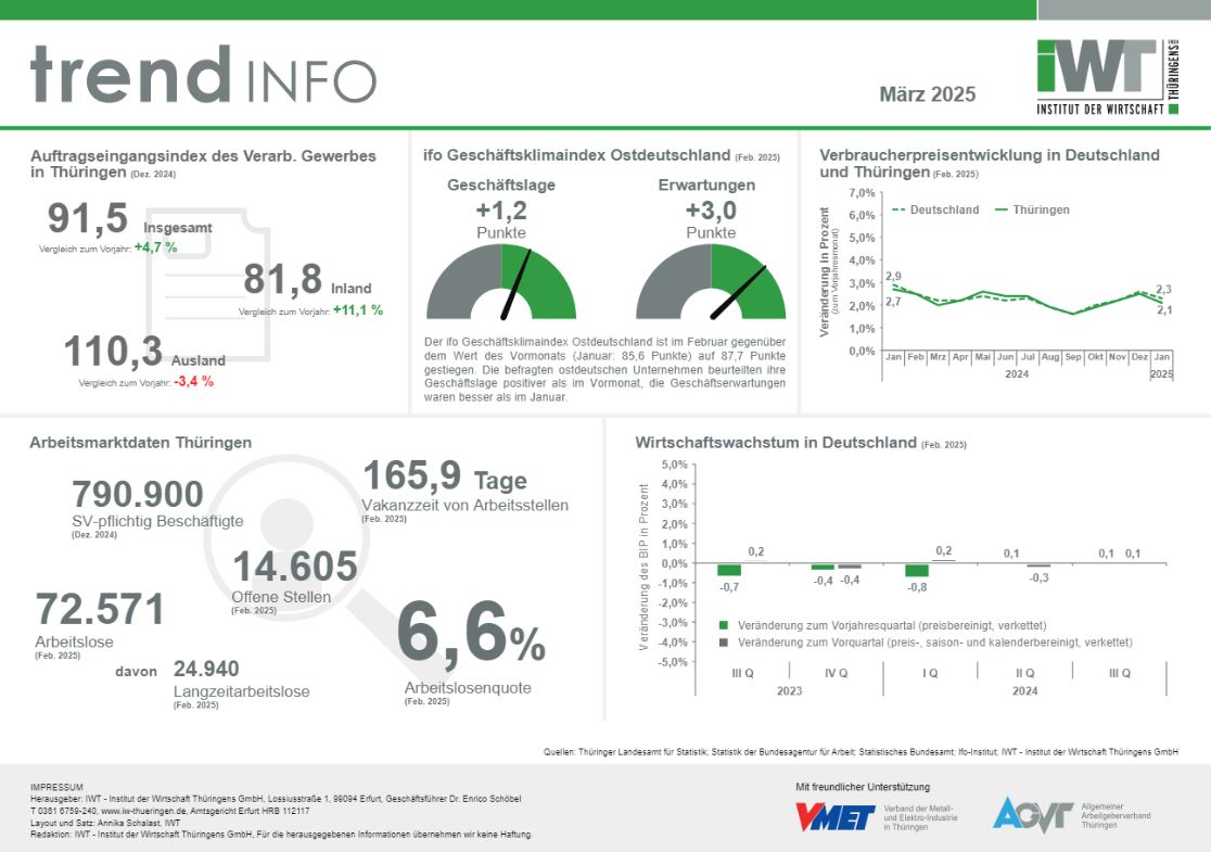 Die TrendINFO wird im gemeinsamen Auftrag des Verbandes der Metall- und Elektro-Industrie in Thüringen (VMET) und des Allgemeinen Arbeitgeberverbandes Thüringen (AGVT) von der IWT - Institut der Wirtschaft Thüringens veröffentlicht.