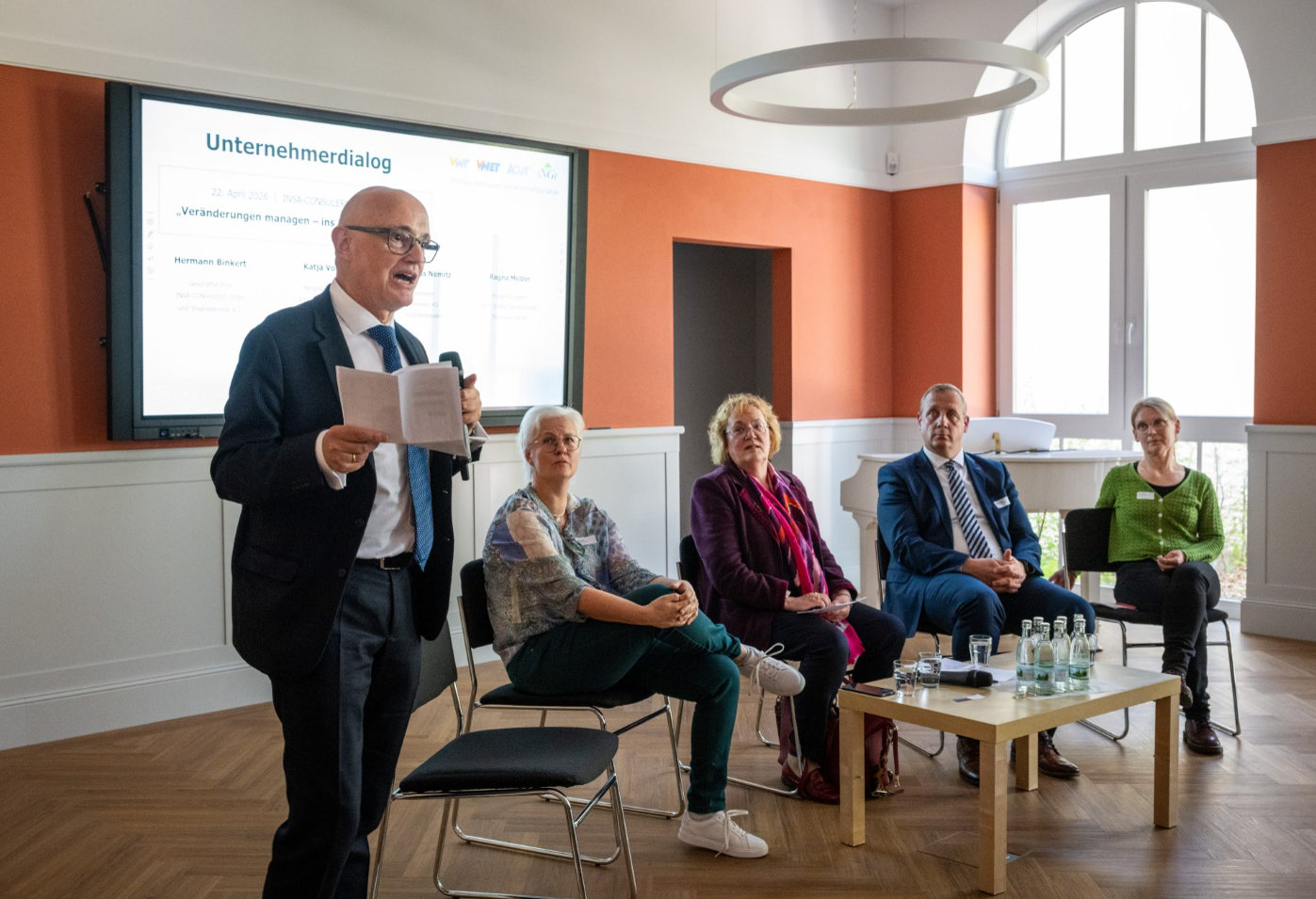 Im Zuge des anhaltenden Rufs von Entscheidungsträgern aus Wirtschaft und Politik nach Reformen und Veränderungen in der Gesellschaft diskutierten Unternehmensvertreter wie es gelingen kann, Veränderungen seitens der Führungsebene klug zu managen und Menschen ins Handeln zu bringen. Gerade Unternehmen müssen immer wieder auf den Markt und auf aktuelle geopolitische Krisen sowie politische Rahmenbedingungen reagieren. Veränderungen liegen quasi in der DNA von Unternehmen.